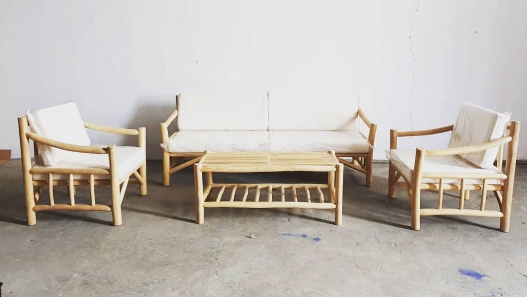 Sofa Ranting Set Of 4, Using Teak Wood From Indonesia And Waterproof Cushions.