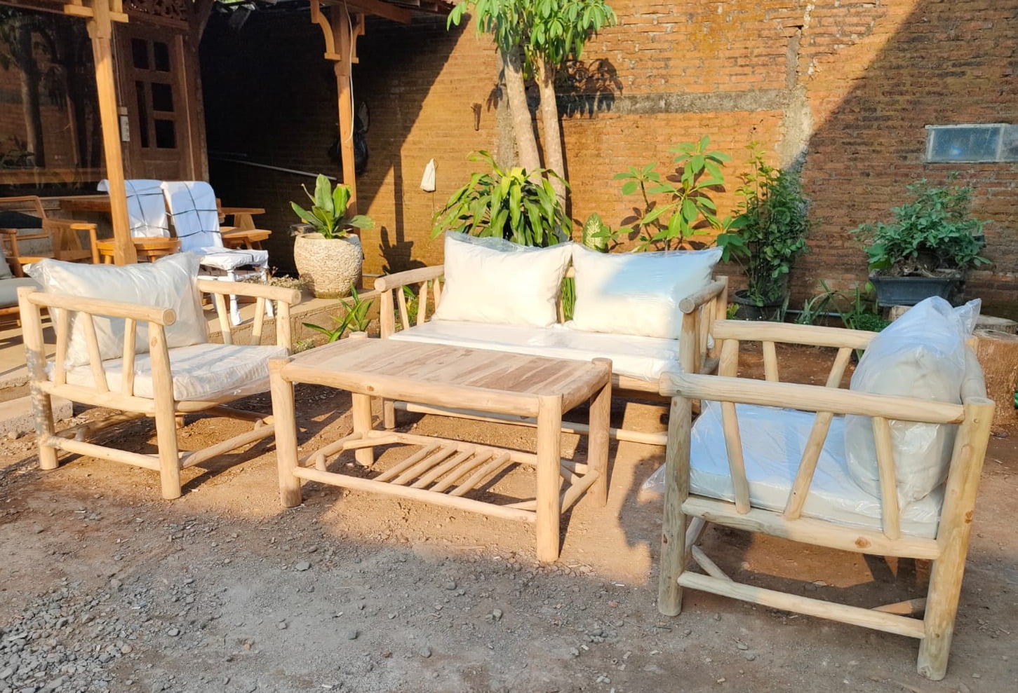 Sofa Ranting Set Of 4, Using Teak Wood From Indonesia And Waterproof Cushions.