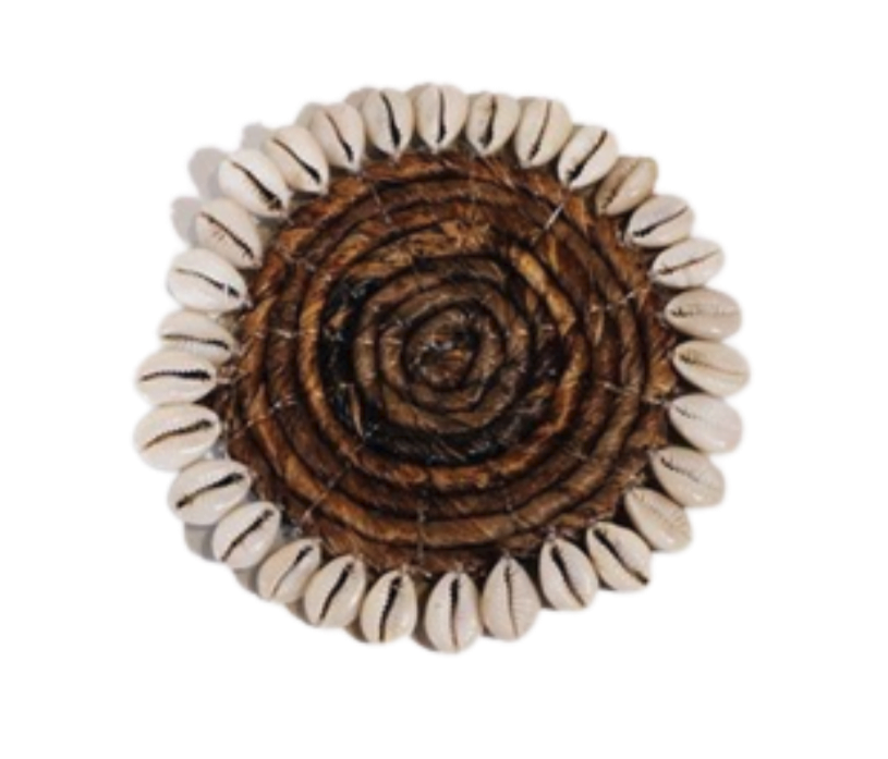 NATURAL BANANA FIBER ROUND COASTER WITH SHELL EDGES