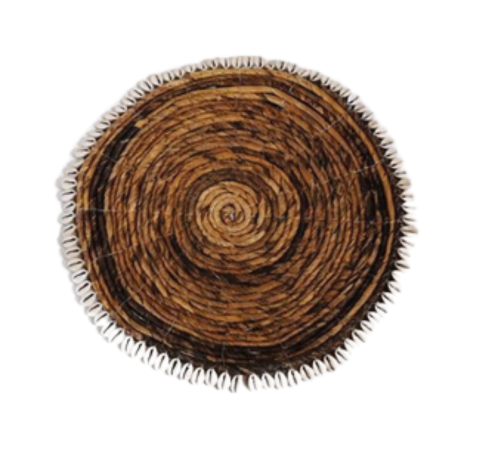 NATURAL BANANA FIBER ROUND PLACEMAT WITH SHELL EDGES