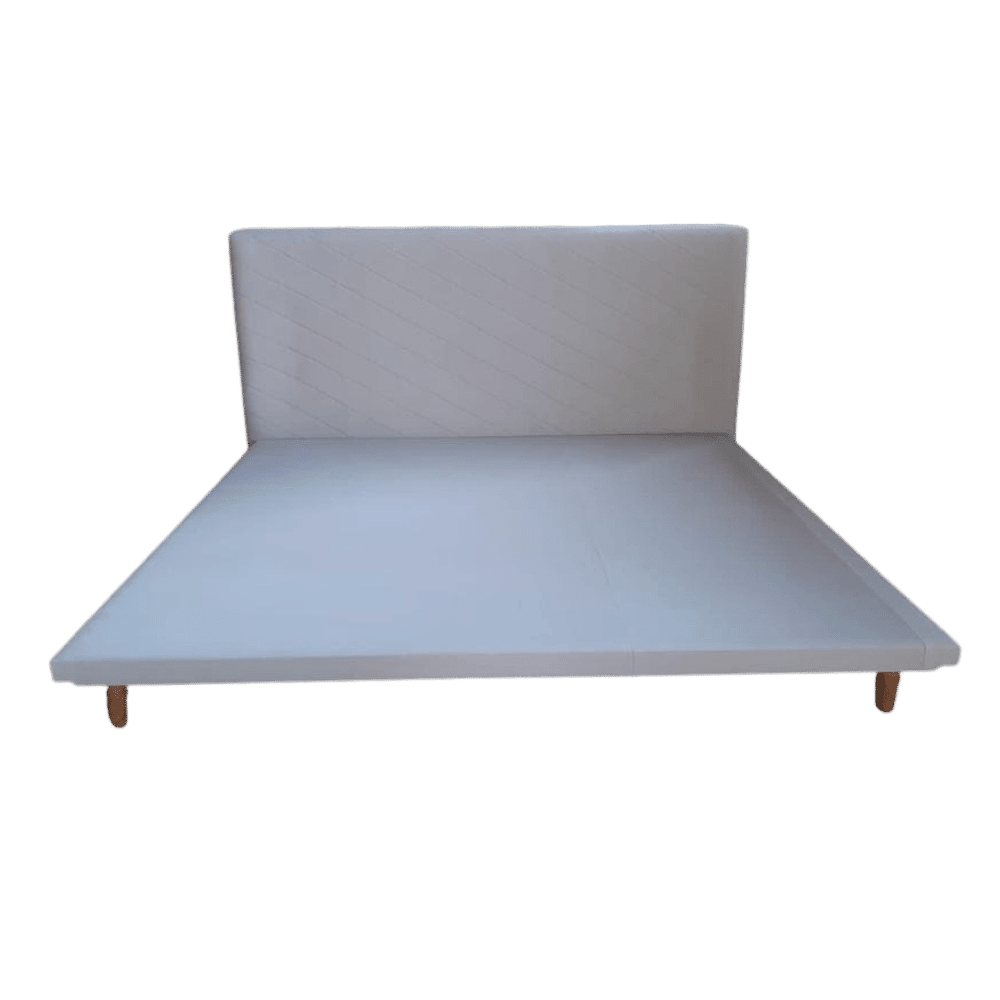 Chair in woven leather and wood oblique legs – Chaise en cuir tressé et