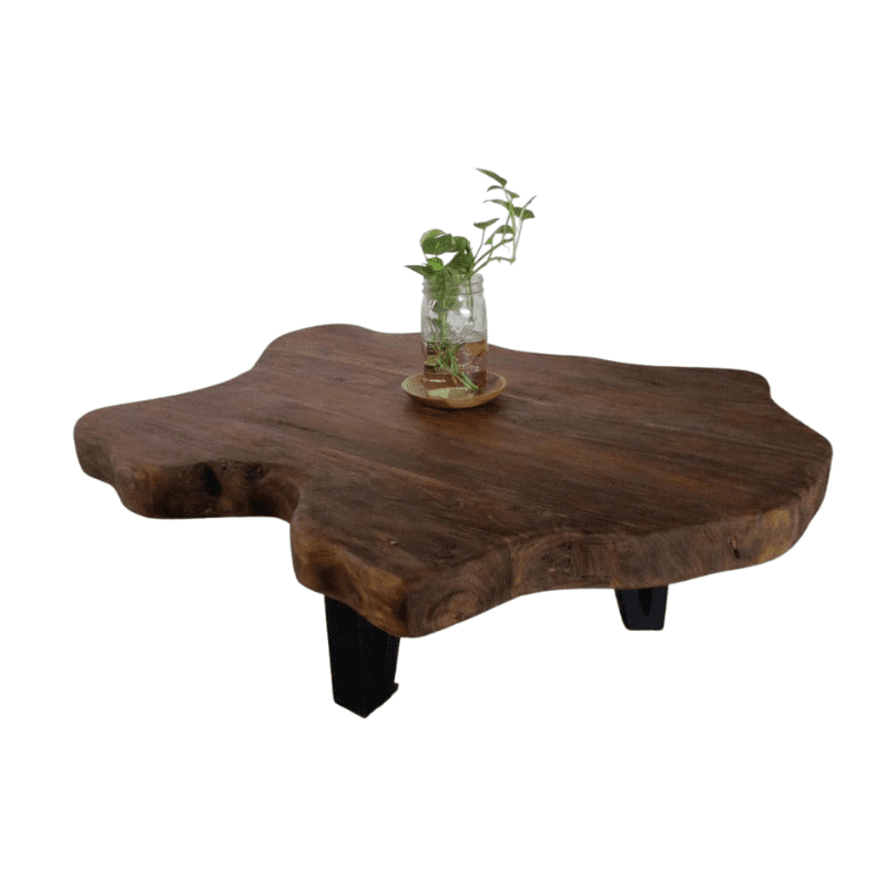 Pulau recycle teak wooden coffee table with iron v leg black matte