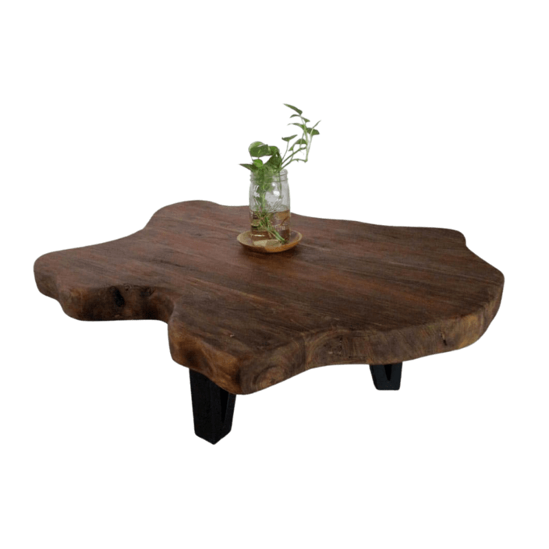 Pulau recycle teak wooden coffee table with stainless v leg or v double line legs