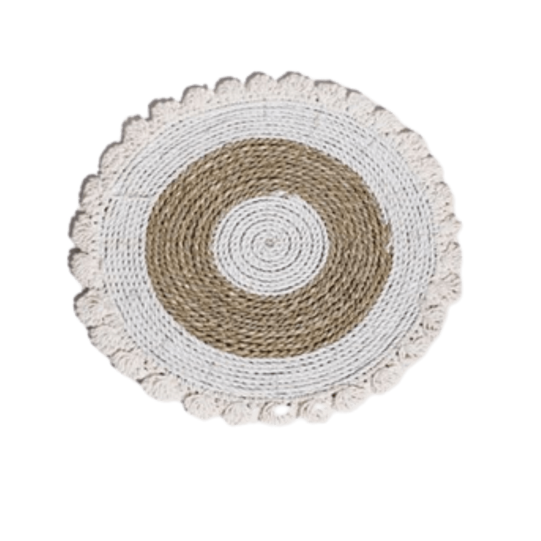 WHITE AND BROWN SEAGRASS PLACEMAT WITH WHITE MACRAME