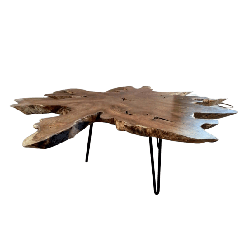 Teak top coffee table WITH Iron Harpin Legs Set of 3