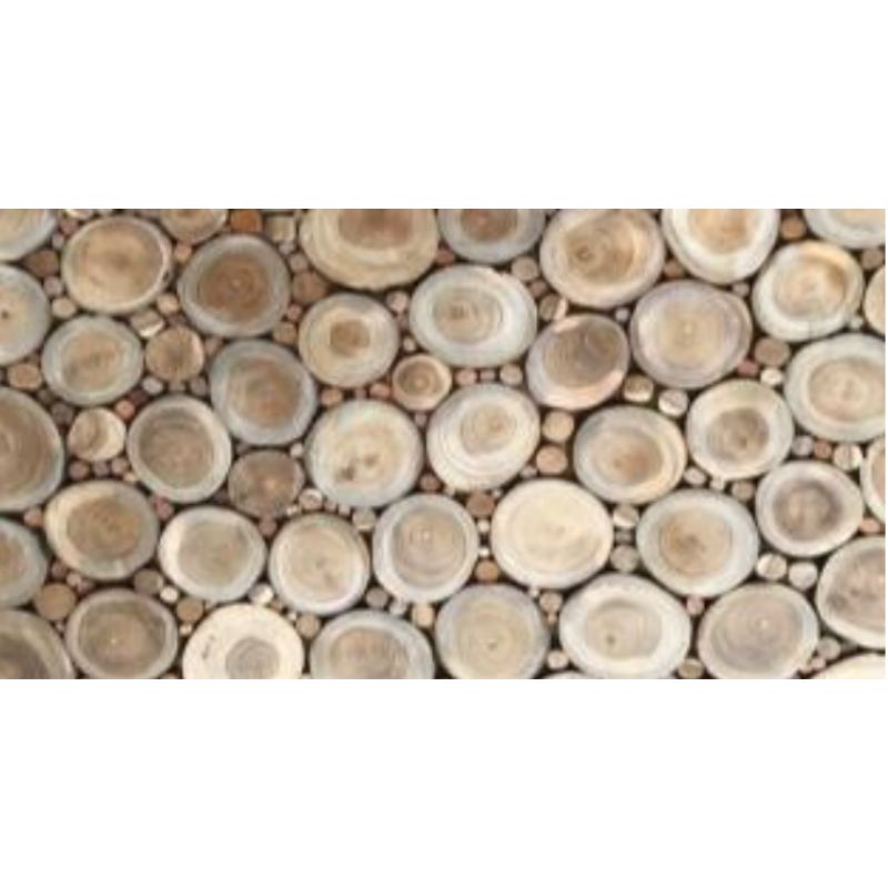 Custom size available 6mm plywood base Each log end wood chip pixel diameter 50- 80mm Mixture hardwood Source from waste cut off saw mill and naturally fallen trees.