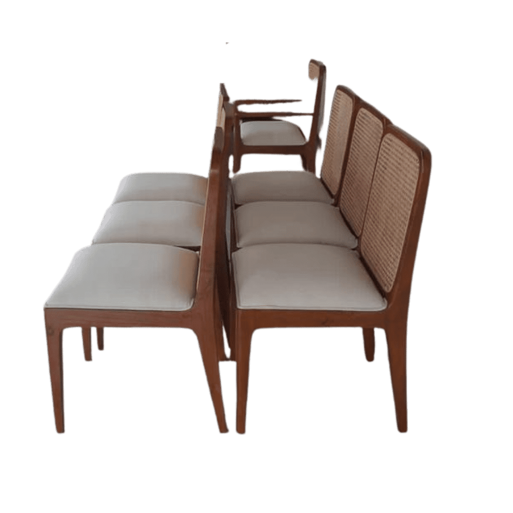 Chair in woven leather and wood oblique legs – Chaise en cuir tressé et