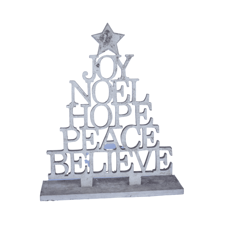 / Wooden with text “Joy Noel Hope Peace Believe”